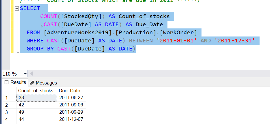 Lets say that we need to know the count of Stocks that are due in the year 2011