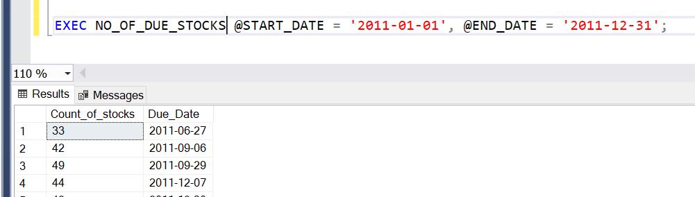 EXEC NO_OF_DUE_STOCKS @START_DATE = '2011-01-01', @END_DATE = '2011-12-31';